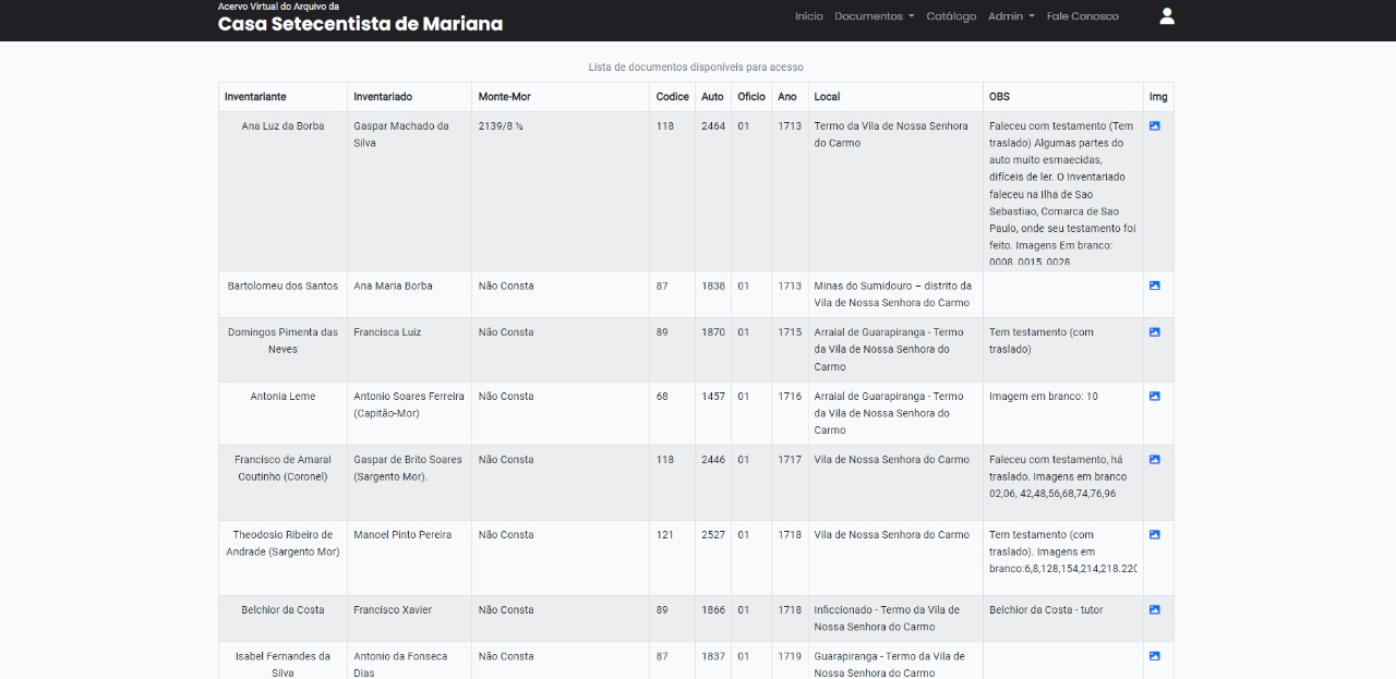 No método navegar, é disponibilizada uma visualização no formato de árvore onde os documentos estão organizados de acordo com o acervo, ofício, ordem cronológica pelo ano, códice e auto e imagem.